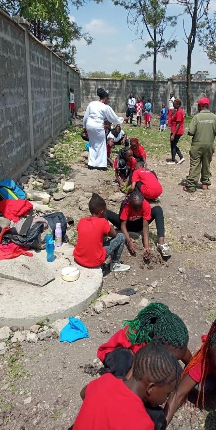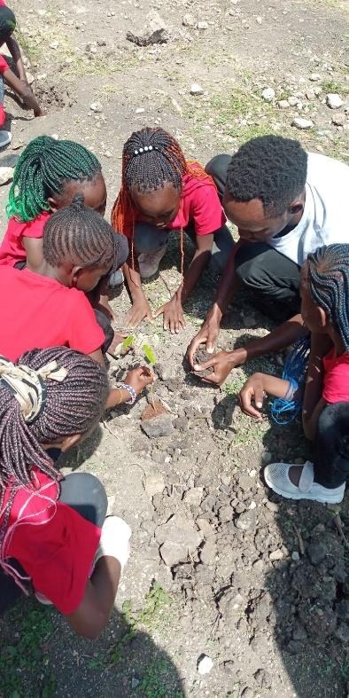 Kiptoo Chemoiwo, the Community Engagement Lead at GLFx Nairobi then took the kids together with the attendees through a quick session on how to plant and maintain the seedlings. He also took this time to address the attendees on the importance of planting trees. Everyone then took to their holes with seedlings at hand. GLFx Nairobi donated 105 indigenous seedlings during the event which included Croton megalocarpus, Markhamia lutea, Olea africana, Hyphaene compressa, Schefflera actinophylla, Vitex keniensis, Eriobotrya japonica among others.